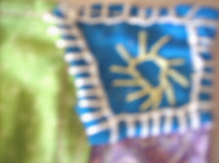 I will say that creating this piece was a challenge! Not so much in assembling the crazy quilting, but fighting with my sewing machine. My thread kept breaking, I fiddled with the tension, my stitches were to short and had to be lengthened, two broken needles and various setting adjustments later, I finally got it sewing correctly when I was about 6-8 seams from having this piece completed.... Go figure!